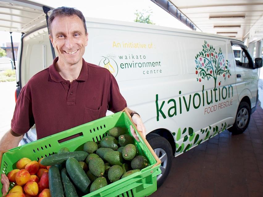 Kaivolution is a food rescue service operated by the Waikato Environment Centre. Kaivolution rescues food "good enough to eat but not good enough to sell" from over 40 food organisations and redistributes this to over 60 charities from around the Waikato including charities in Hamilton, Huntly, Morrinsville, Tokoroa, Raglan, Te Kuiti and Thames. Since it's inception in October 2014, Kaivolution has rescued 200 tonnes of food, with our monthly food rescue equating to 31,428 meals in our community per month.