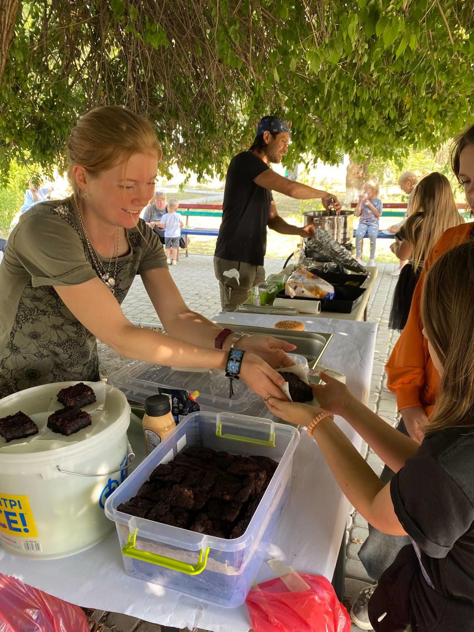 Then we visited a village 7km from the frontline and served pork ragu, pasta and brownies to the elderly residents still living there. As we looked over a crowd of about 40 enjoying their food and laughing while artillery boomed in the background