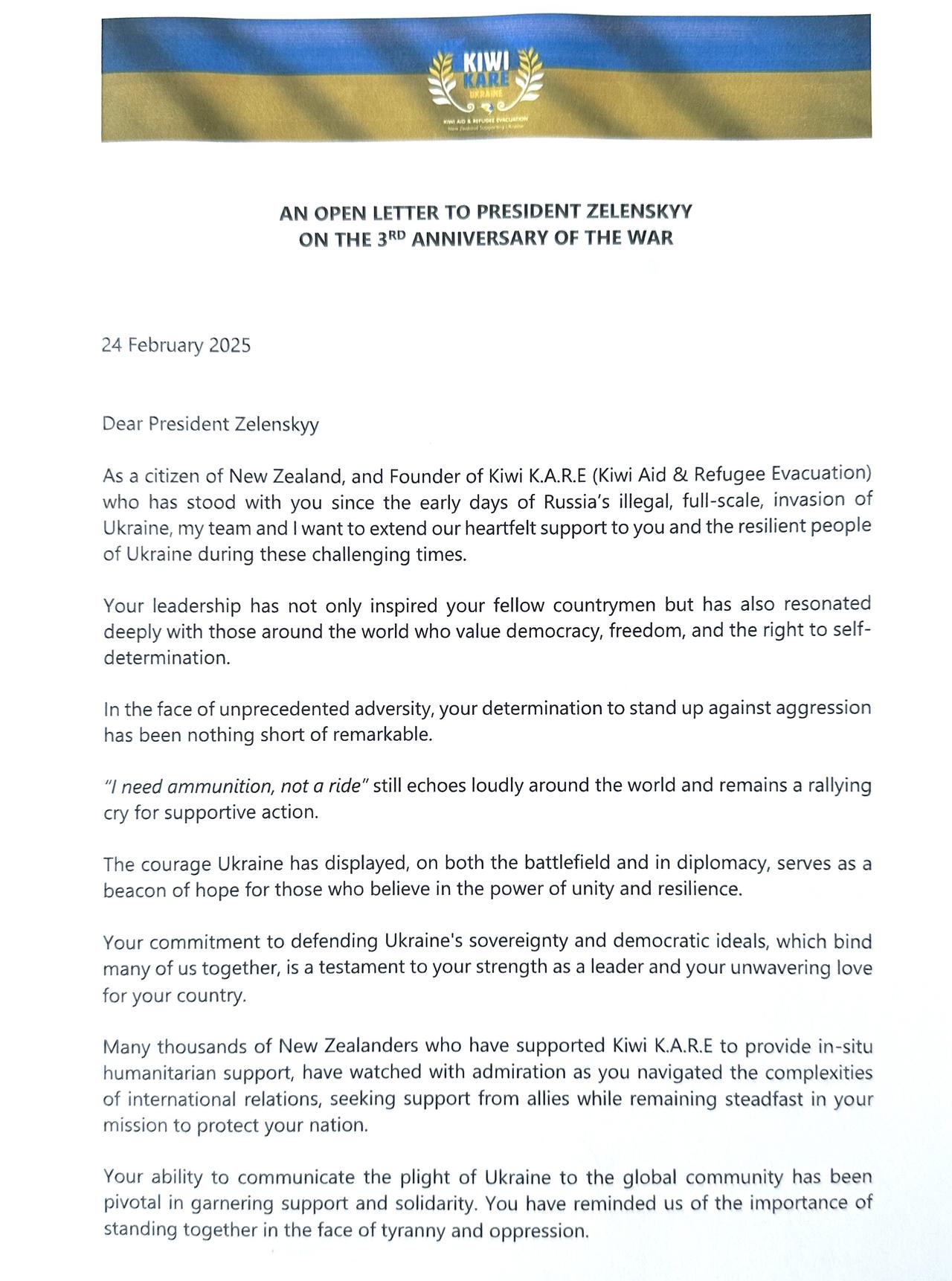 Many of you have asked how best to support Ukrainian’s over this period. As you know, Kiwi K.A.R.E remains fully operational under the stellar leadership of Colby Pakarno.