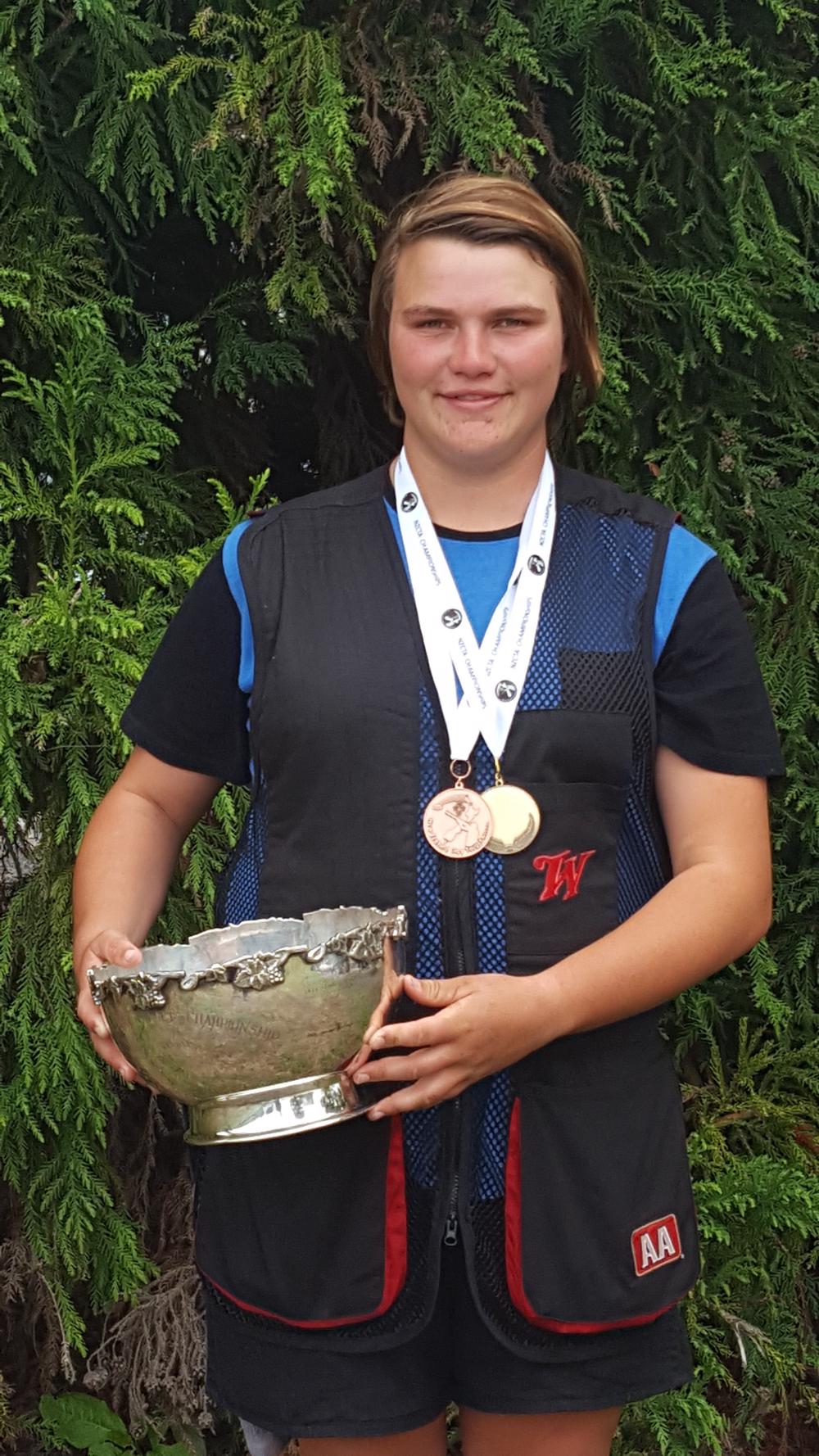 In 2016 at the Nationals held in Christchurch we won the Girls team event. I placed 3rd in Girls Single Barrel. I have medalled at various shoots for the College in the North Island at Club Competitions. I also won medals for shooting at the Thames Gun Club for C grade in 2016.
