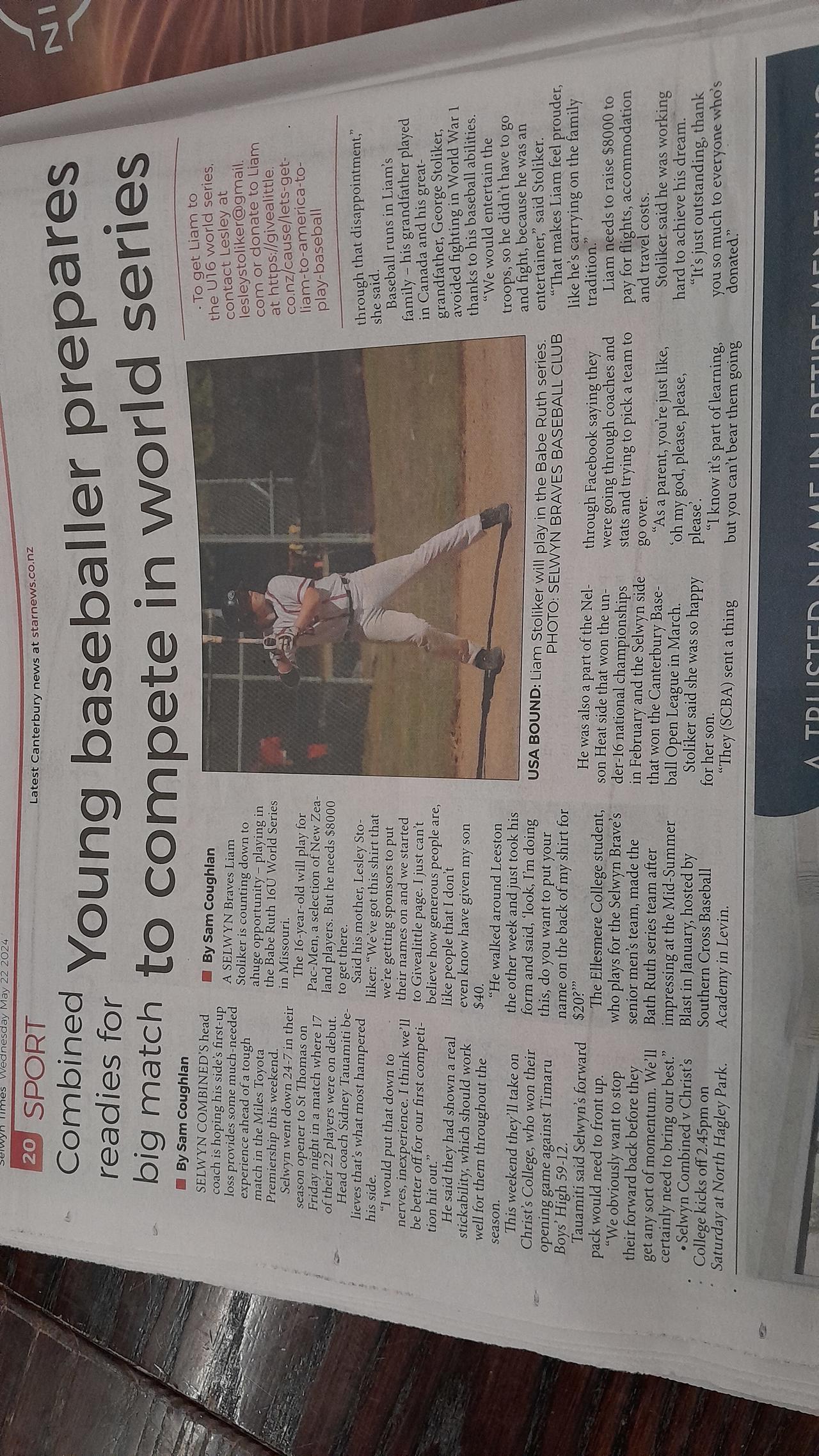 15 November 2024Liam is off to Australia on Nov 26 to play Basball for NZ! His is playing in the NZ u18 team as a utility player which means he can do everything, a great player to have on your team.