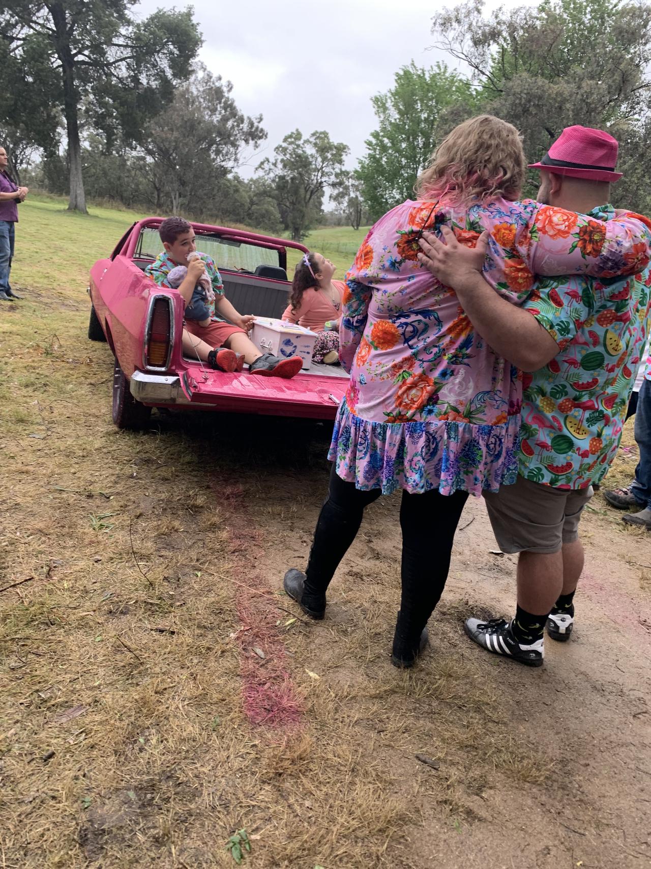Alex’s children ( Lilys sister and brother ) with Lily watching the bright pink ballon’s they let go disappear in to the heavens 🎈🎈🎈