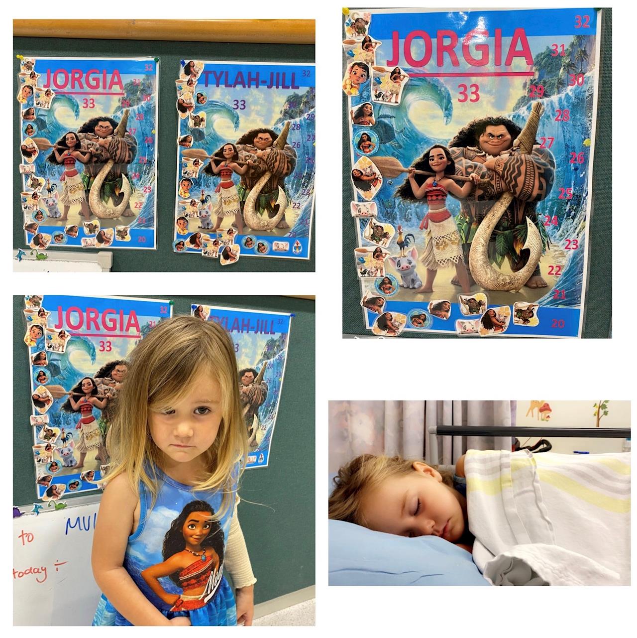 This is her countdown chart where every morning she places a Moana sticker before she goes under general anaesthetic.