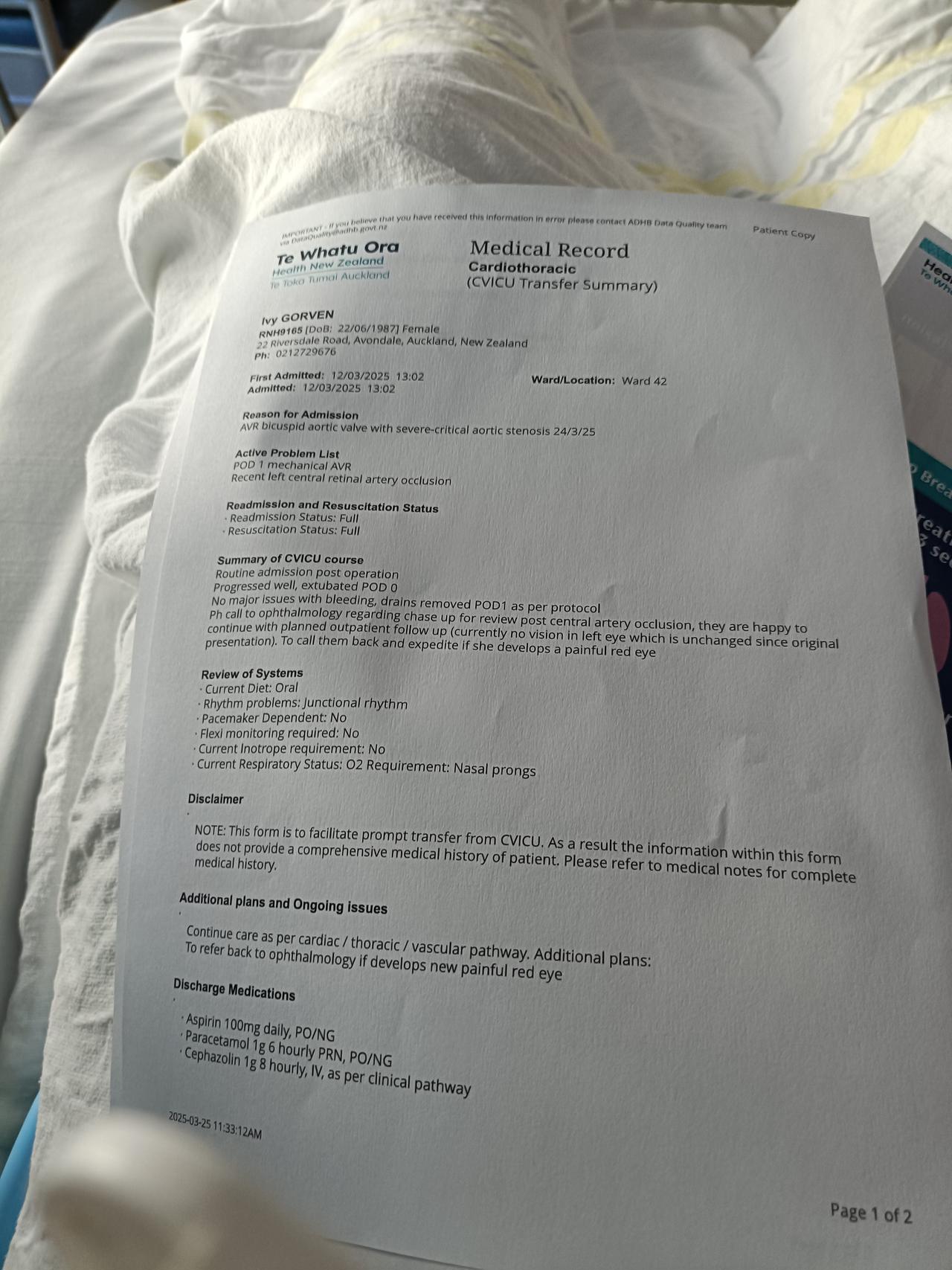 4 April 2025there's a risk when replacing the aortic valve, particularly in cases like mine where there was a lot of calcification to remove, that the heart's electrical system may be disrupted. my heart rhythm was monitored for a while after surgery, and by Wednesday it was decided that l would need a pacemaker. it was installed yesterday (Thursday) - a relatively straightforward procedure that took about an hour and only required local anaesthetic - and now that my heart is beating correctly l am feeling a lot better.