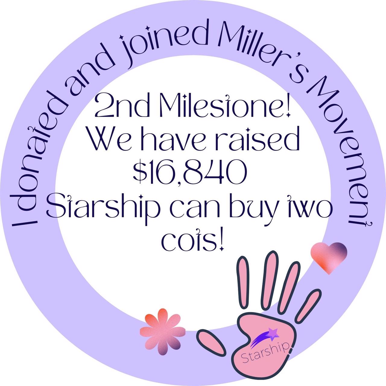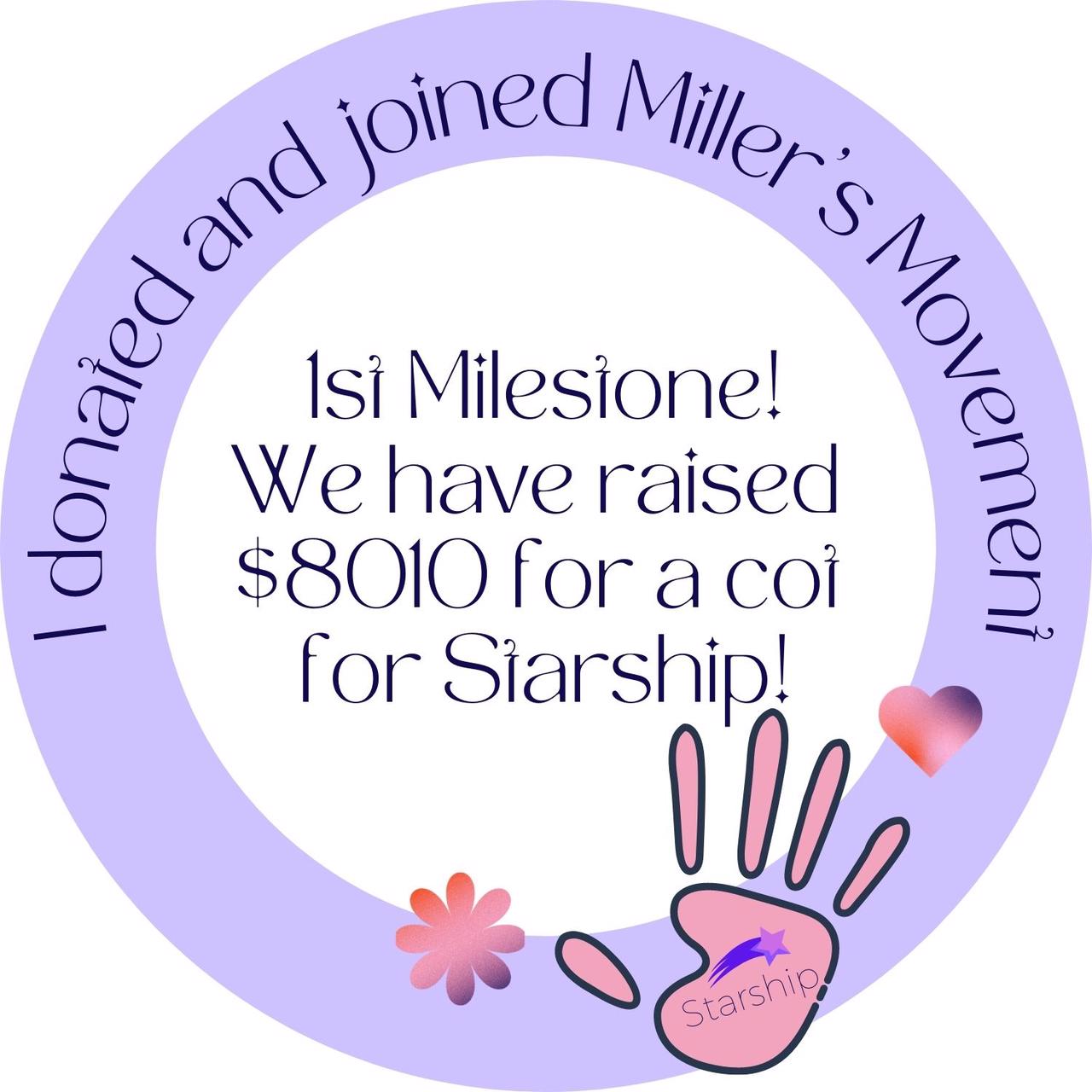 With much reflection and discussions Chad and I have decided that Millers first birthday is the best time to donate all the money to starship, what this looks like is up to Starship to ensure the kids are safe, no matter what this looks like you will be apart of the journey. Updates will be posted on Millersmovement Instagram and Facebook pages.