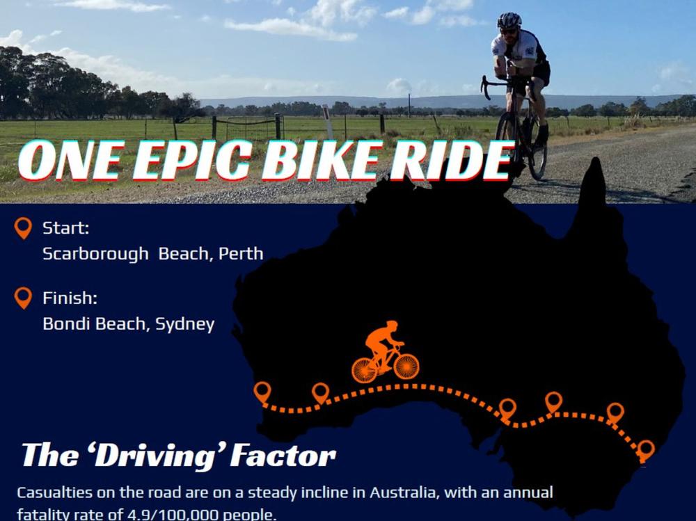 In July 2027, Paul will cycle more than 4,000km from Perth to Sydney, stopping in regional communities along the way to share his story and encourage open conversation around mental health, resilience, and safer decision-making on our roads.
