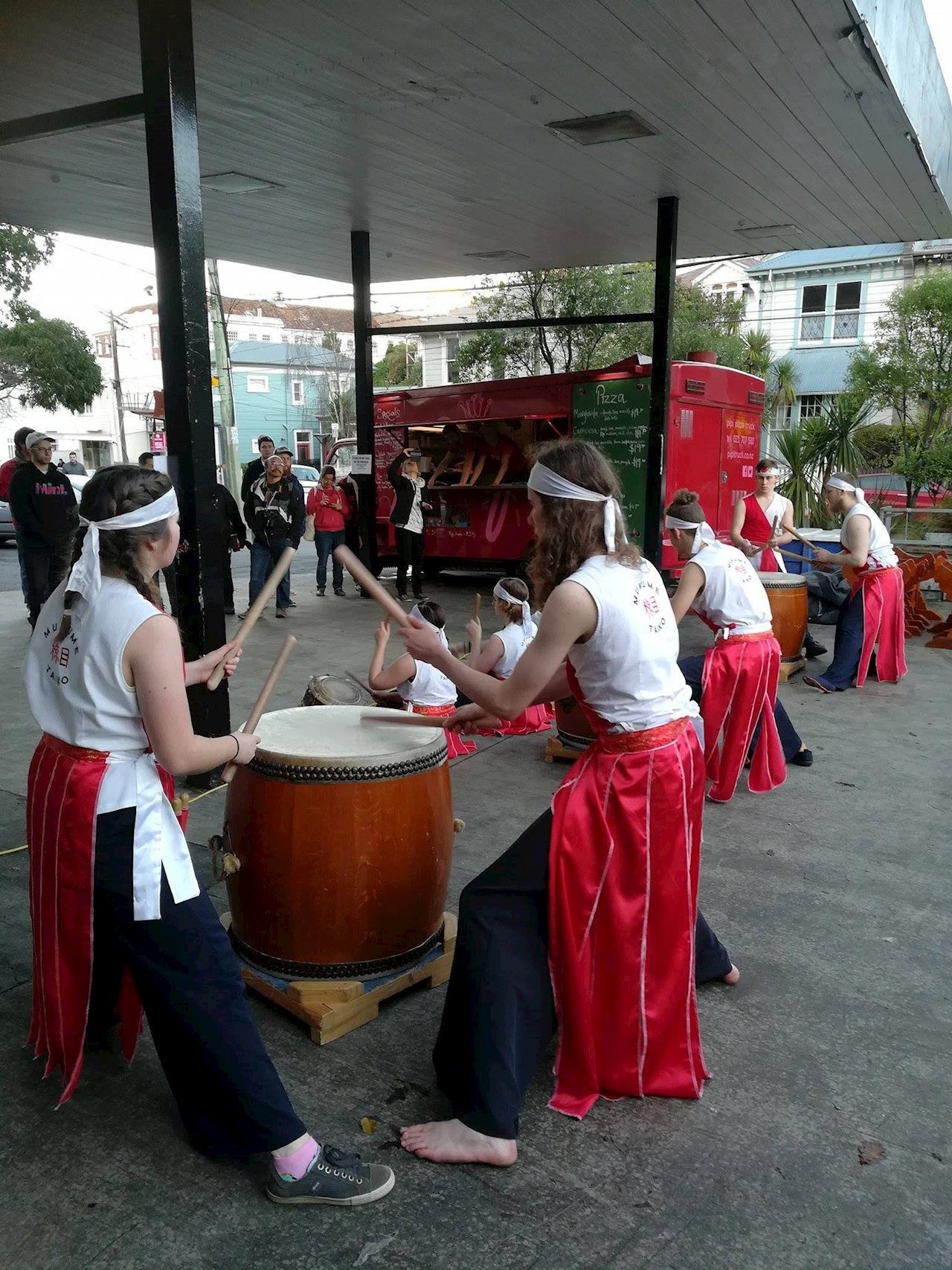 We are the Mukume Taiko Drummers, based in the Wellington region. Our group consists of students from Kapiti College and Marsden College Whitby.