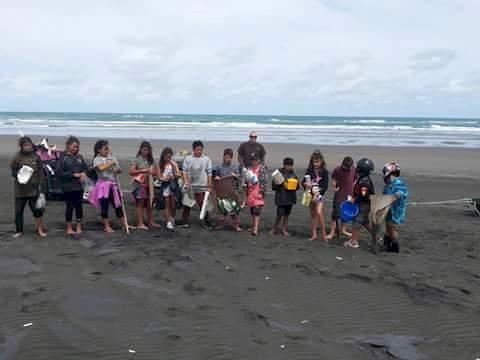 About once a month for over 3 years a dedicated group of local volunteers, which includes up to 25 kids at a time, have been going around to the Kawhia ocean beach with their borrowed bikes and trailers to pick up all the plastics and other bits of rubbish, that have been washed in by the prevailing westerly winds and tides, or dropped by visitors...