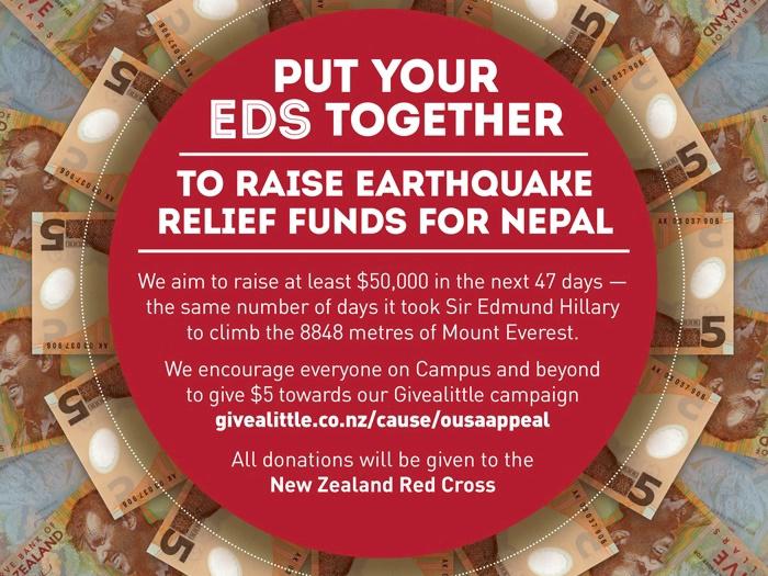 The “Put your Eds together” campaign is asking Otago to give $5, to help us reach a goal of $50,000 for earthquake victims in Nepal.