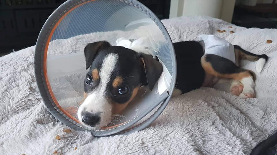 Finally she has had all the pins out, all the bandages removed and is allowed to go for proper (short) walks and can run and play. She's even allowed in the water again which I'm sure she'll love when we get to a beach this weekend. It'll probably be at least a month before she's using it fully.