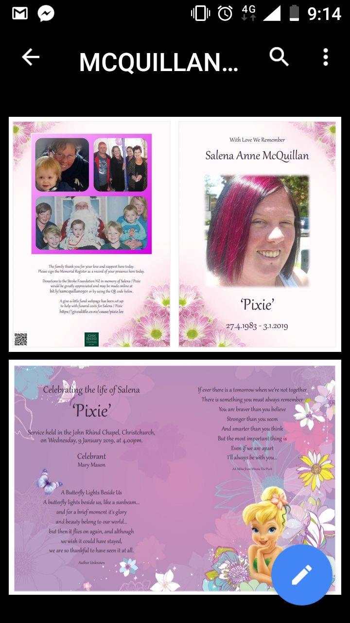 31 January 2019This was beautiful, her boys painted her casket pink, we put our handprints on it and signed it. So proud of all the boys on this very hard day. We still need a lot of help, for the service and for her boys.