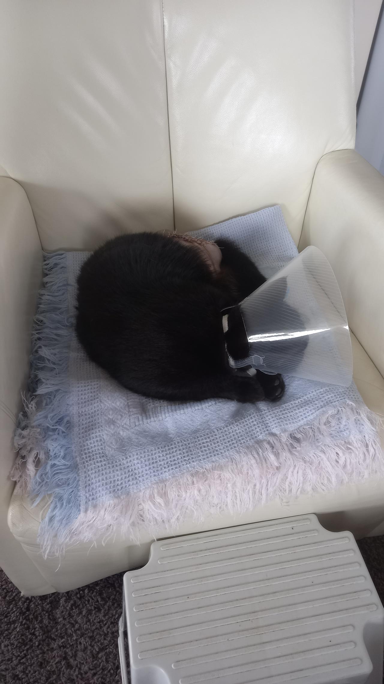 16 October 2022UPDATE on Felix, I have added new photos. Felix had a sore. We didn't know about until 4 days later. I Remember there was a bit of clue stuck to his skin and fur. We thought it was from the surgery while the monitoring his vitals during surgery. We couldn't wash it off, was only a little. Felix got thick fur and I thought it will come off by itself. Oh how I want to kick myself, I knew Felix had an follow up with vets and we would have asked to look at it if not coming off. 4 Days after stitches came off we noticed he licking one spot alot and thought it was still pain. He was still on pain meds but had to see vet to reduce the pills. I was shocked to see that Felix managed to pull the fur where the clue was and made a sore. In a couple of days he has licked the sore to a big sore. We rushed back to the vets. He is back on stronger pain meds and cream to treat him. We have to air dry the sore and at night cover with the cream. My poor baby have the cone back on and vest at night. He is really not in good place. However the Other vet said he wasn't on enough pain relief and used the sore as it comfort him. We knew he was and had this question a few times at the vets and they recond he was on enough pain meds. We know now he wasn't coping. Since Felix is on strong meds he is more calmer and more snuggled. After a week we will see if he needs to have less pain meds. It's day 3 and the wound is looking dry but needs lots of healing. I do feel bad for not keeping an eye on it sooner and mention the glue when we had him at the vets when stitches was taken out. Thank you to all that have been supported us we appreciate it very much.