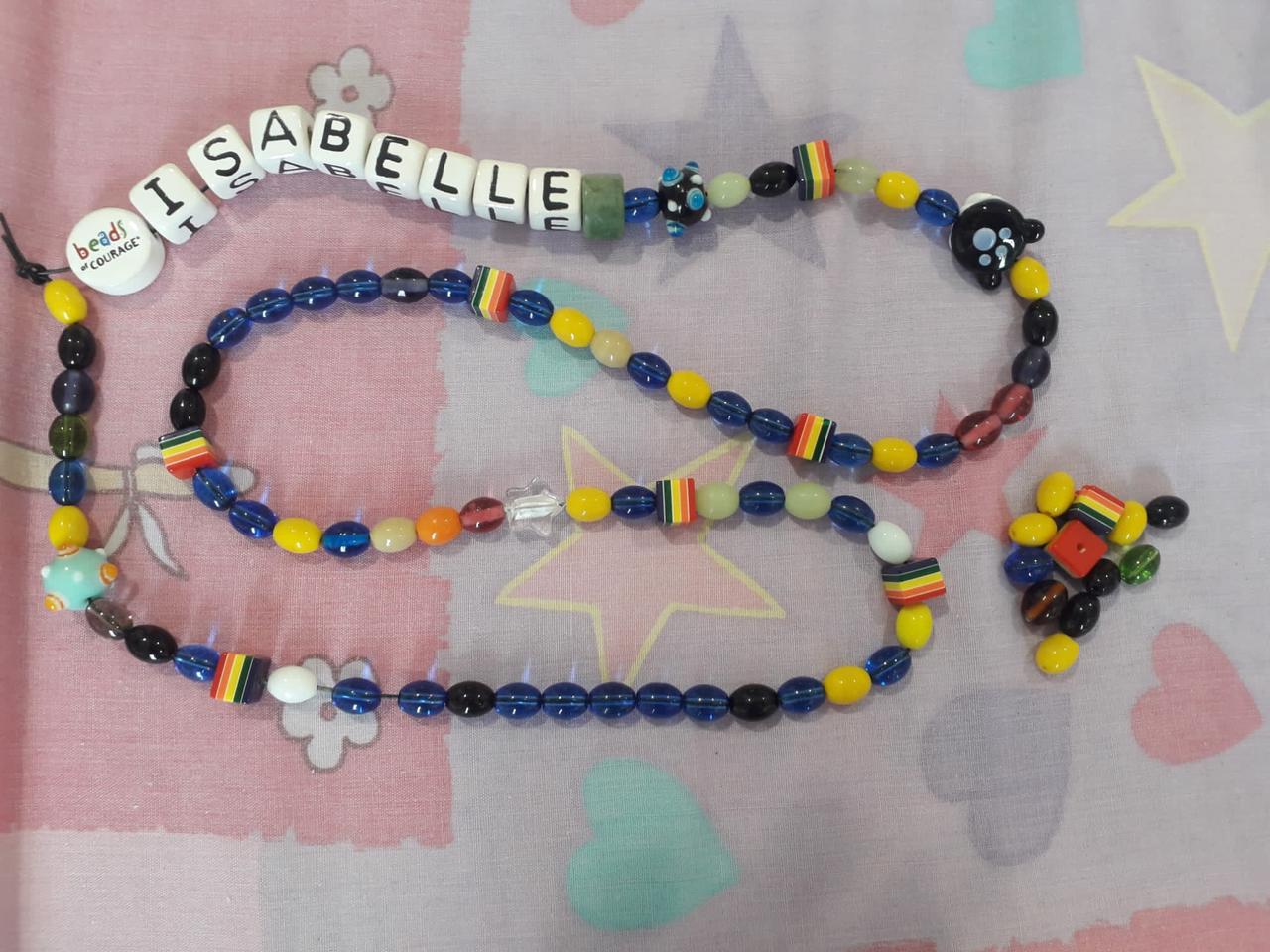Today Izzy was given her final beads of courage including the grand purple heart! All together she collected 791 beads - 1 bead for every doctor visit, treatment, setback, blood transfusion and more. Seeing all of the courage beads together gives you a view of what the year has involved.