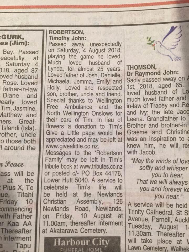 Following a night filled with more stories, tears and laughter, on Saturday there were tributes to Tim across the Wellington region! Black arm bands were worn across most matches as well as a minutes silence being held across many games.