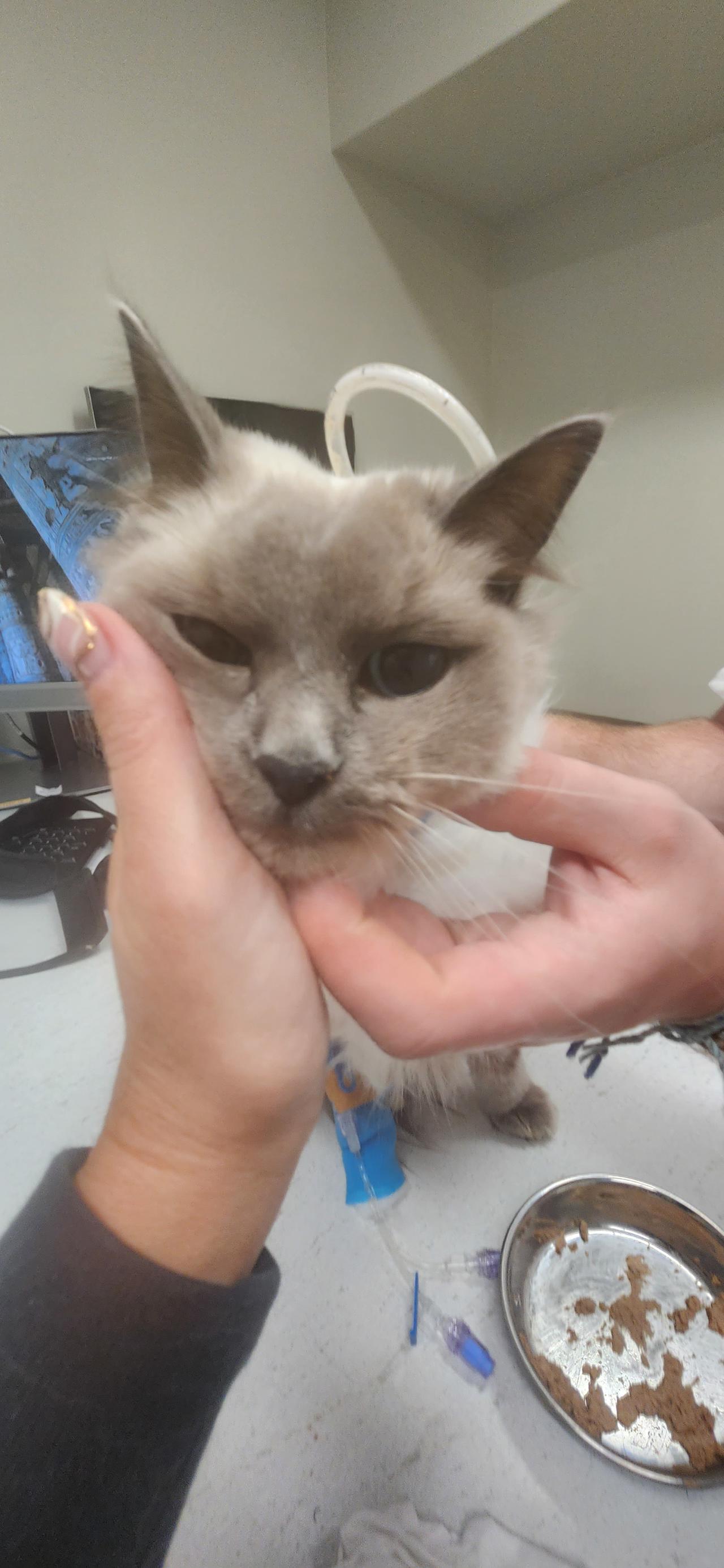 She showed interest in food when she got home, but hasn't eaten at all over night or all day today, showing no interest 😢 And is wobbly on her feet.