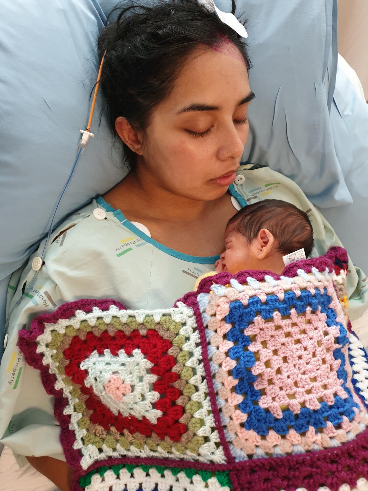 Family are still by her side 24/7 to help her where possible. She still needs help to hold baby Theo and to breastfeed. Theo is brought down to her everyday, so she can have contact with him which she loves. Theo is a blessing and he is now off the feeding tube but needs his mum to get better for him.