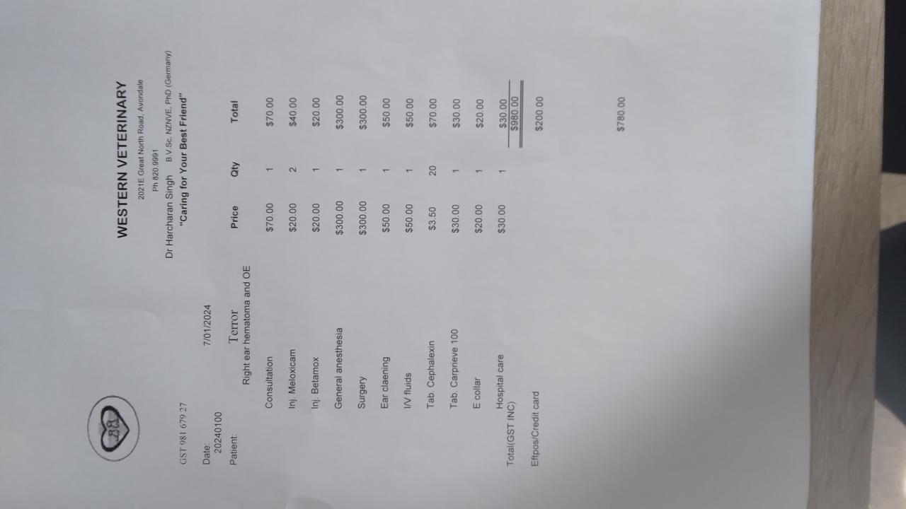 Terrors ear has recovered pretty well, she's back to her playful self. Her ear had a little bend but will get back to normal in time..
