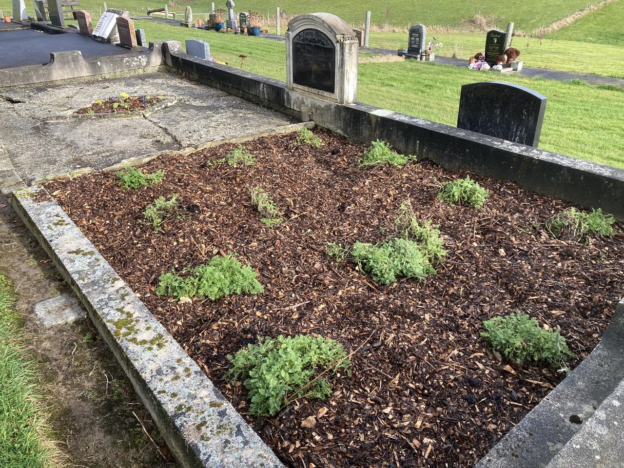 Gore District Council planted Eadie grave (Block III Plots 7-8) in Anthemis Daisies adding colour and beauty.