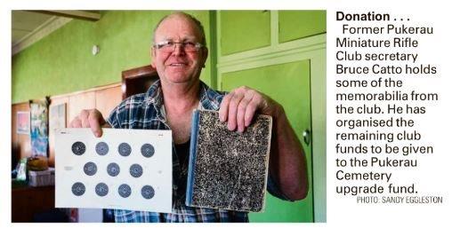As reported in the Ensign: Pukerau Minature Rifle Club donates $2330 to Pukerau Cemetry Support Group. Bruce Catto's grandfather John Alexander Catto (1888-1973) born in & farmed at Otikerama, educated at Pukerau School, 33rd Reinforcements WW1, gassed France 1918, was a integreal part of the Rifle Club, a top shooter and winner of many prizes. Gordon Robertson, Howard Tripp, Norman Speden, Jim Catto and many others including John Norton's senior's father were among the numerous members over the years.