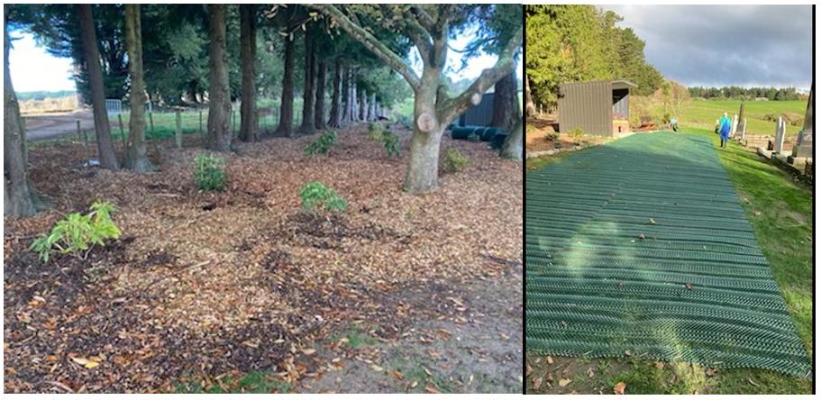 It's been a busy month: Catherine Pullar & Lyn Sharp finished the planting around and south of the shelter; "grass protector" was laid enabling wheelchair access to the shelter & the seat in the southeast corner; information panels were installed in the shelter; annual report was submitted to Charities, Gore District Council planted 20 Rhododendrons at the entrance; the gardens have been mulched.