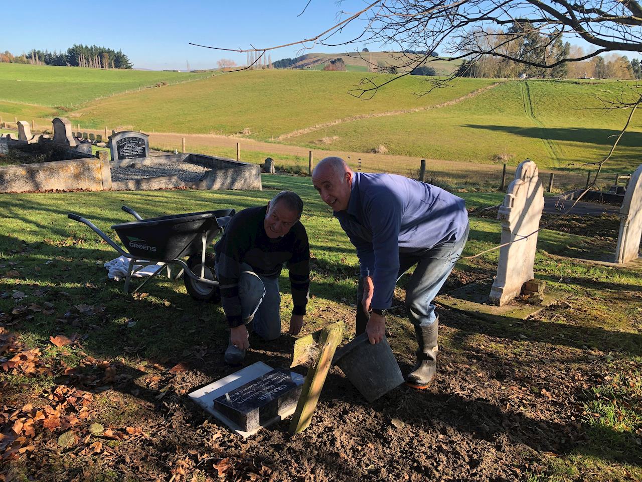 Great article in today's Ensign re the work at the Cemetery last week. The fundraising goal is now $12,000 with a number of individual donations and pledges, a $3000 grant from the Gore RSA, and the generous donation of time & materials from Richard Puanaki, Ian Pullar, Mervyn Potter and Robert Young. Contact Margaret Pullar, Secretary, for more information.