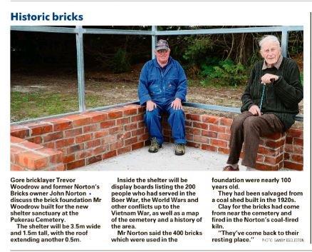 Reporting great progress on the Sanctuary / Shelter at Pukerau Cemetery with the brickwork completed this week.