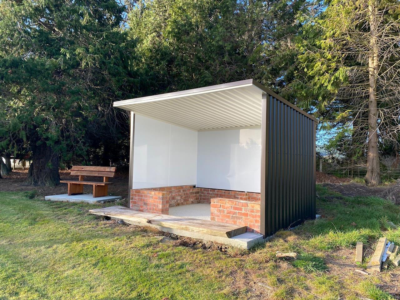 - Donovan Harvey of Roofcraft Gore generously completed the shelter at Pukerau Cemetery today.