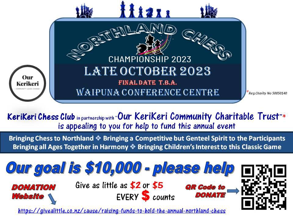 Founder and President of Mangawhai & Maungaturoto Chess Clubs....raising funds on behalf of: Registered Charity: Our Kerikeri Charitable Trust