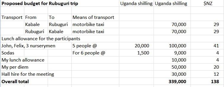 Moses, our Uganda organiser, is making his first trip to Rubuguri to meet with the village chairman and local nurserymen to (a) decide which community collectives get the new trees; (b) source a mix of native and suitable exotics; and (c) initiate our registration with the Uganda Government as a C.B.O. (community-based organisation.)