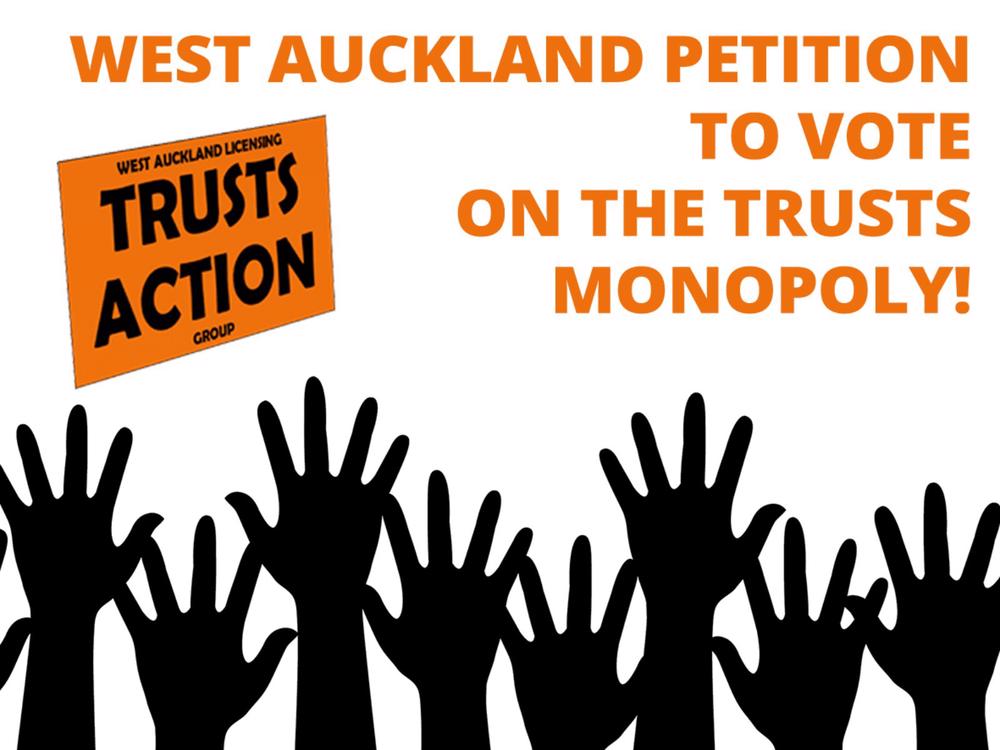 We’re launching a petition calling for a referendum on The Trusts monopoly of alcohol sales (taverns, hotels and off-licenses) in West Auckland. (more information on the petition can be found at www.trustsaction.org.nz).