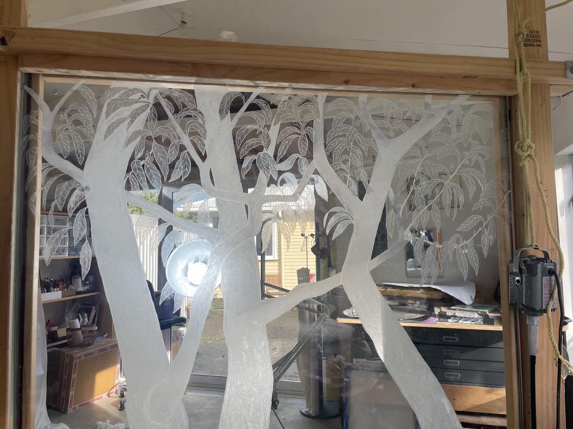 Sadly when checking install mid week Claire found that a third panel had been broken (probably last Sunday night). Fortunately she had access to the right sized glass and has moved heaven & earth to copy and create a replacement for this panel too so all three can be installed (scheduled for this Wednesday). Check out the video link where Clair explains part of the process involved. We've opened an page if you wish to make a contribution to Claire for this extra work.