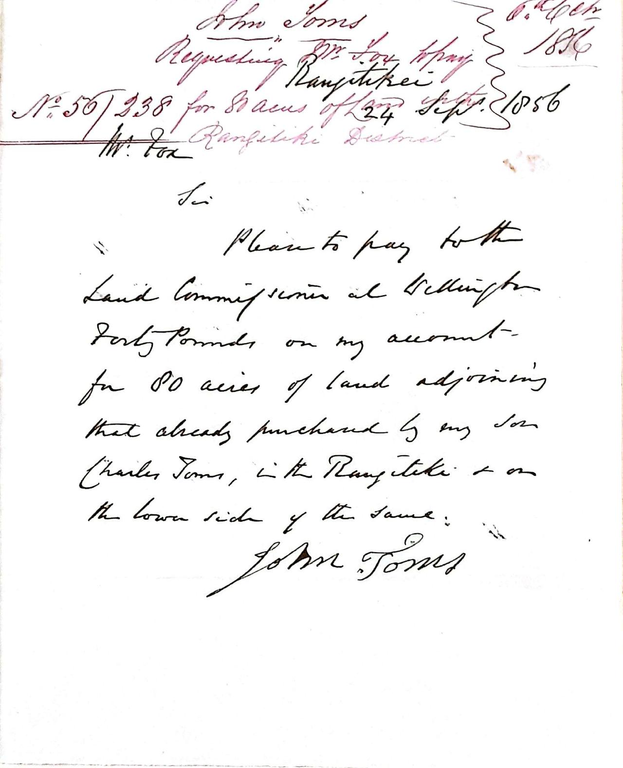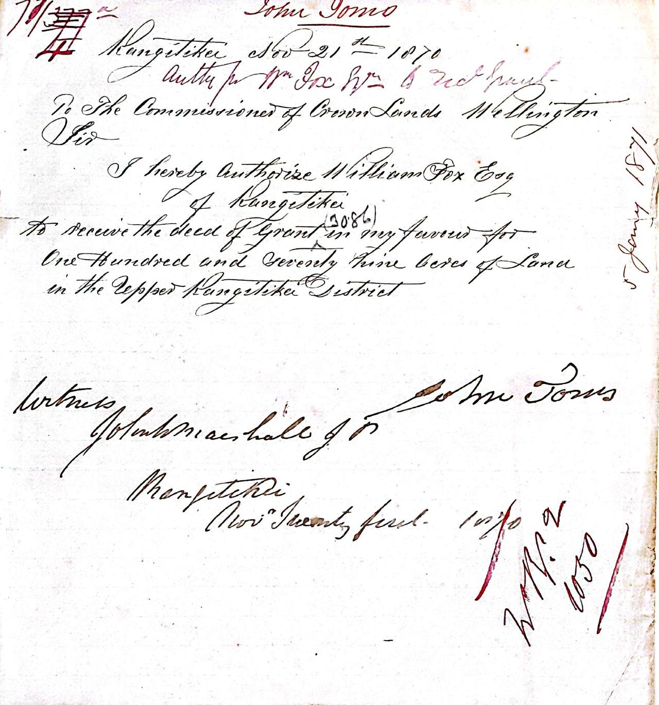 For those of you who like history - I have found the Land Deed for John Toms in 1870/71 for 150 acres from William Fox. It was at New Zealand National Archives.