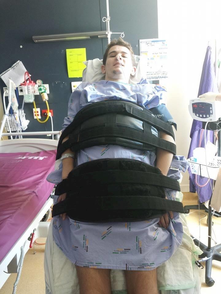 Sam has settled into the spinal unit with the physiotherapy and occupational therapy sessions getting underway. On Wednesday Sam was able to sit up enough to get into the power chair and drive around with the aid of wrist lacers to strengthen the wrists - it is good to have some mobility. Attached to the chair is a funky water bottle with a long bendy straw which helps to keep the water intake to the necessary level for good health.