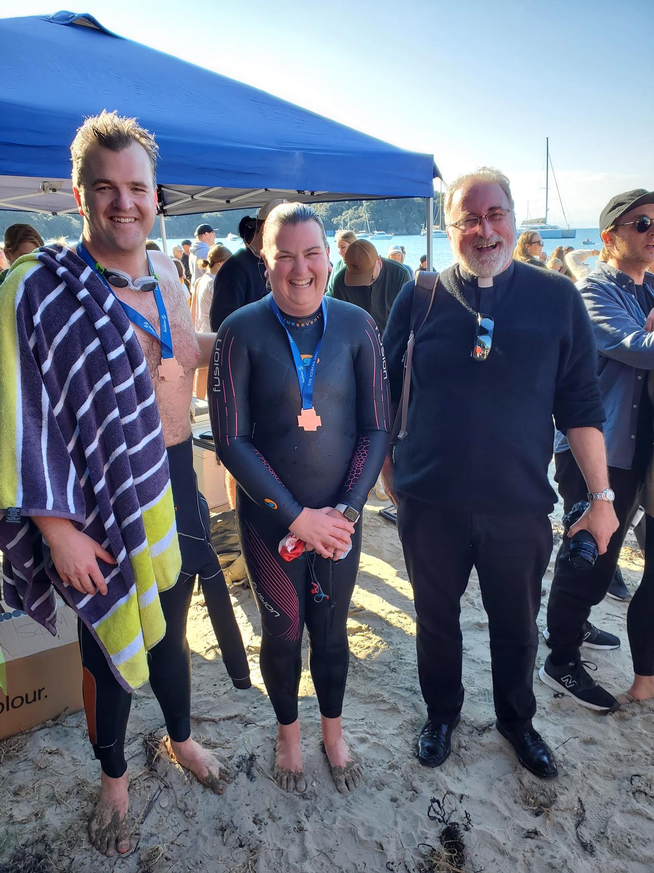 Thank you very much to all of you for your generous support of ‘swimming for St Pat’s’. We were very lucky with weather and conditions on the day. We swam to support the hardworking priests, volunteers, staff, and religious at St Pat’s Cathedral and were delighted to have representatives from the Cathedral come and cheer us on.