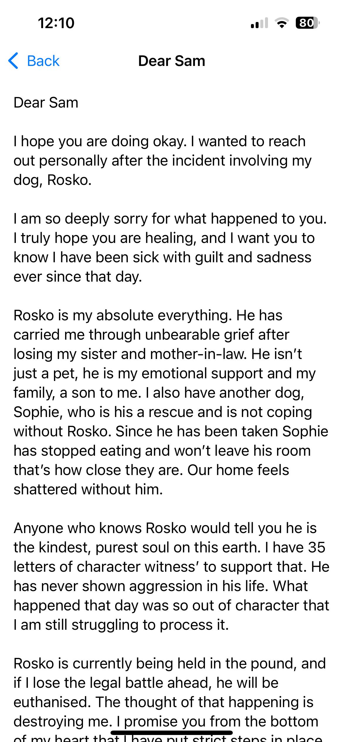 In the meantime, I’m seeking another lawyer. I think I’ve found someone more affordable who also has a dog themselves, in the hope they’ll have their heart in this fight and be even more invested in bringing Rosko home.