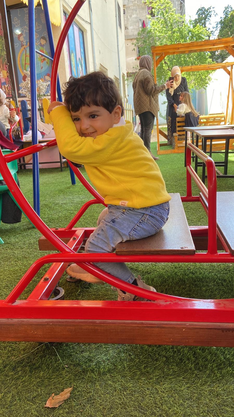 Habibi Zohier has been going to kindergarten. He's having a blast. Look at his bright smile 🥹🌞. The occupation has shattered the innocence of Gaza's children, depriving them of life's most basic needs.💔🥺