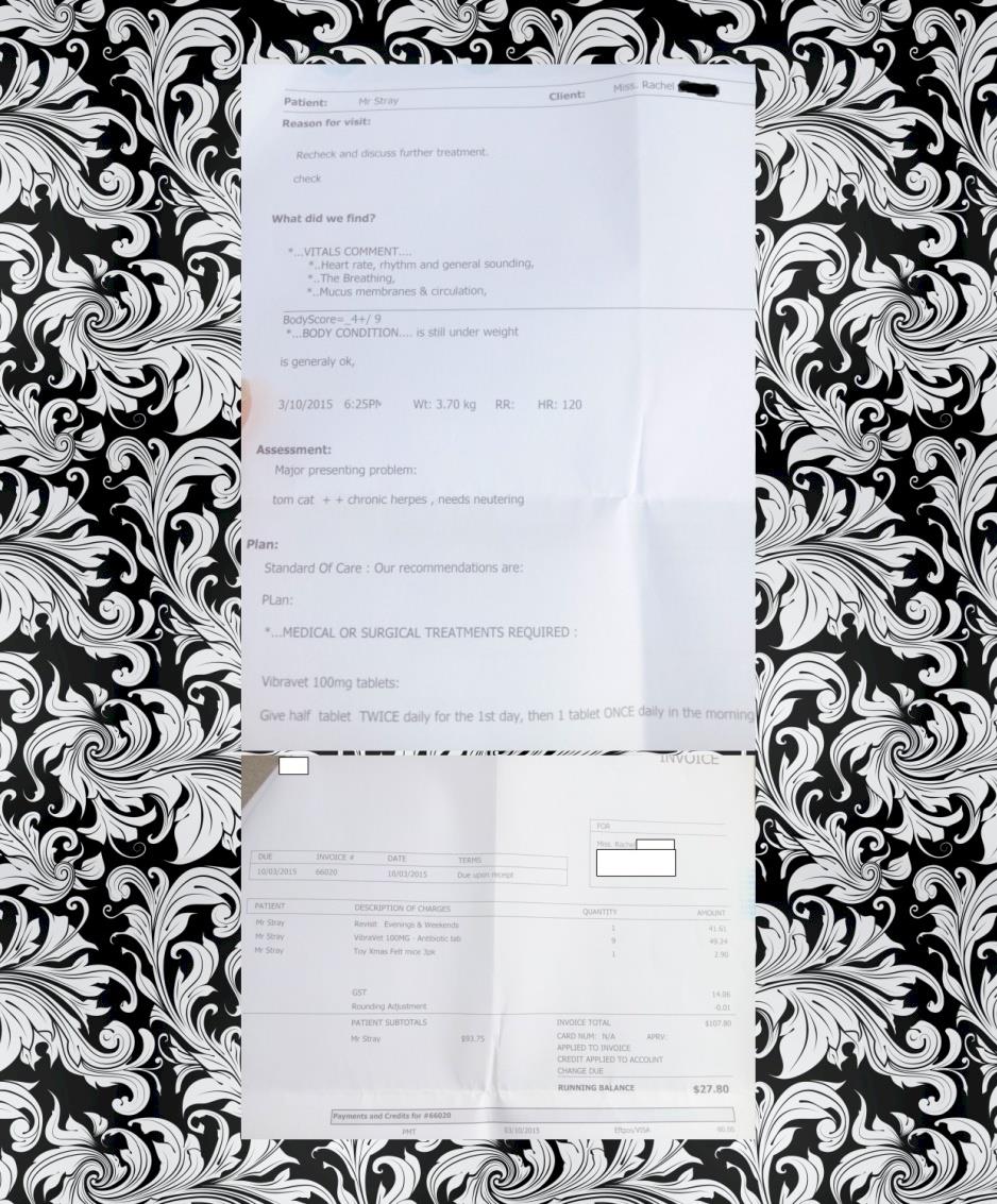 Hi good friends! Mumma Rachel here... I wanted to get down to the nitty gritty details about our Mr Stray <3 We've had him 10 days now and he's doing much better than before, but we still have a long way to go!