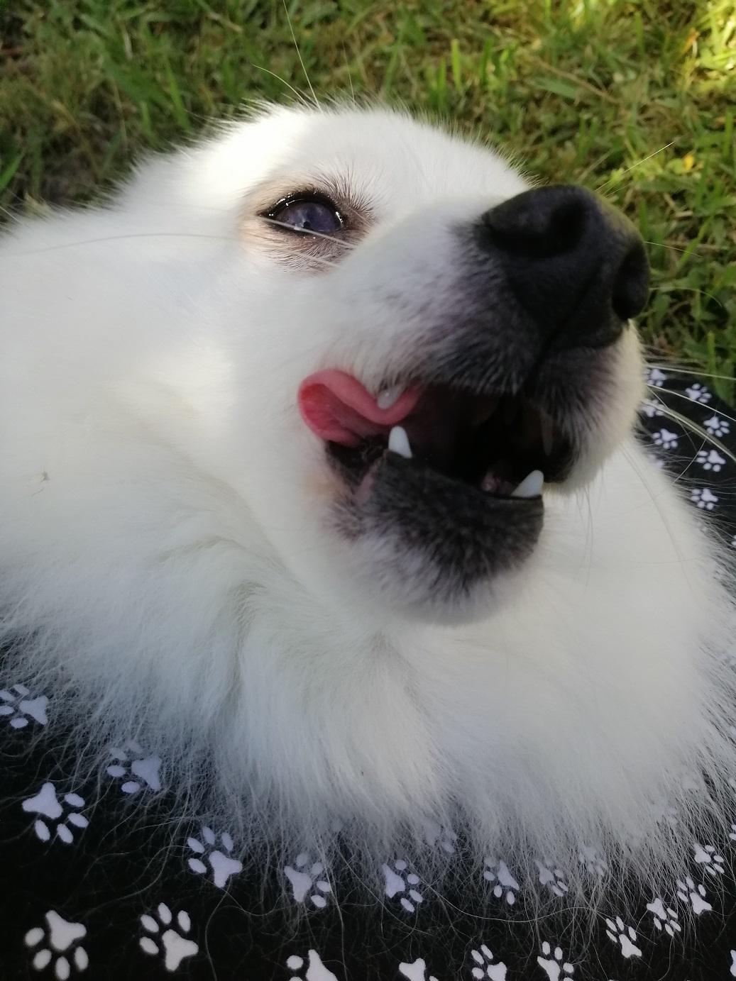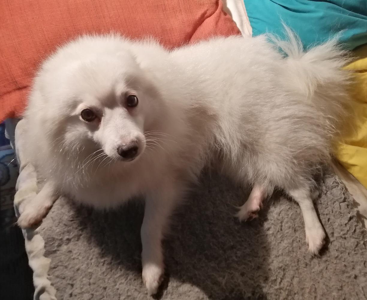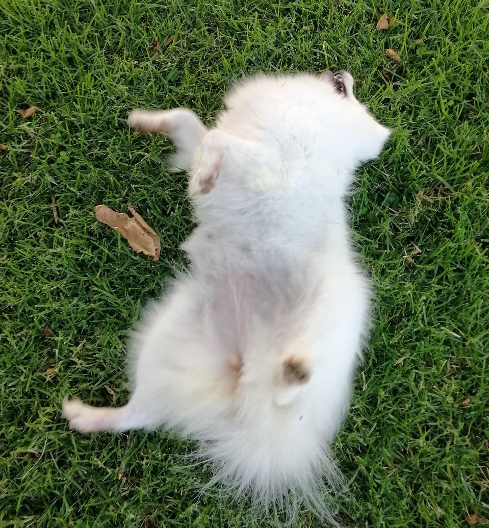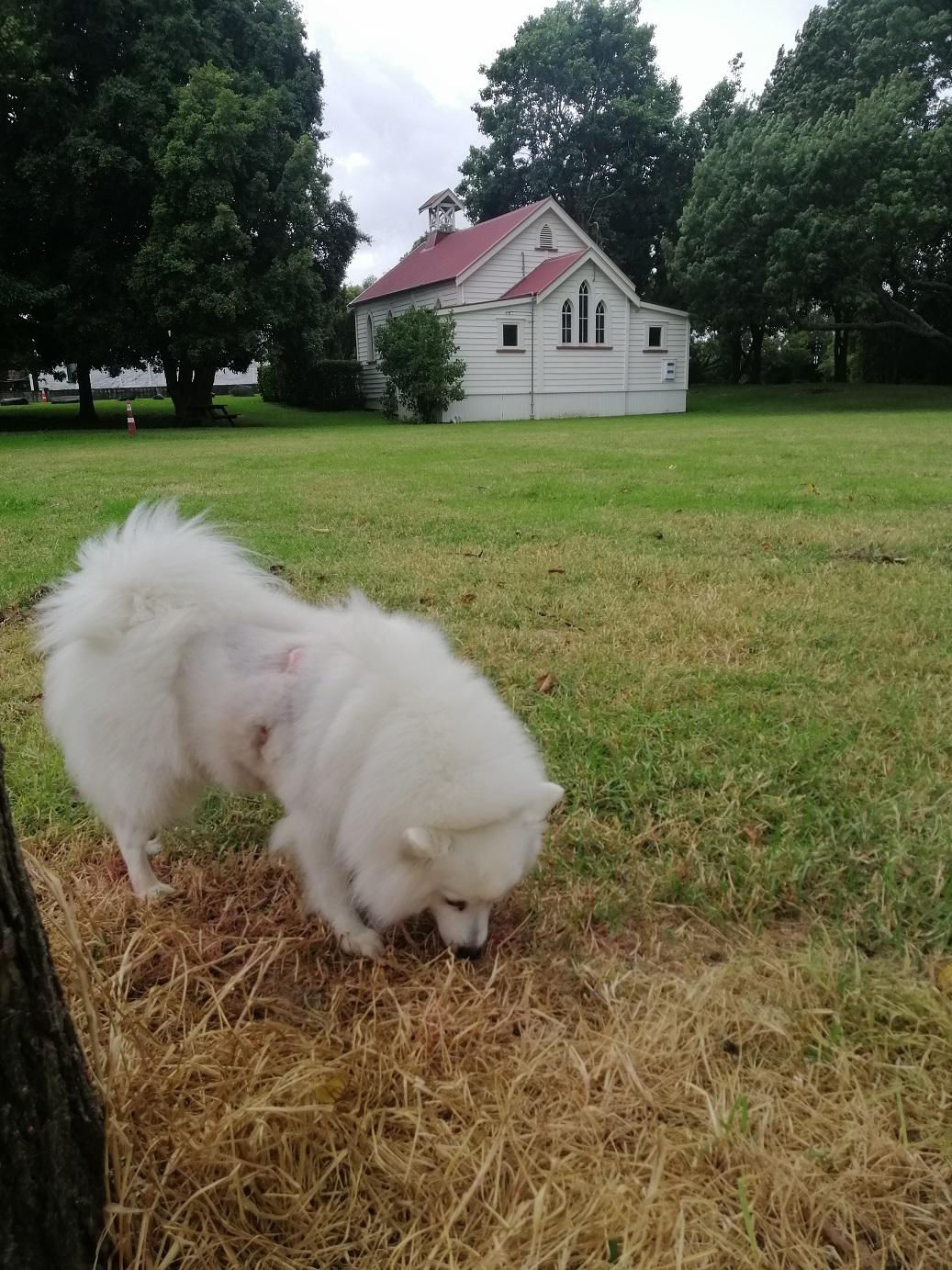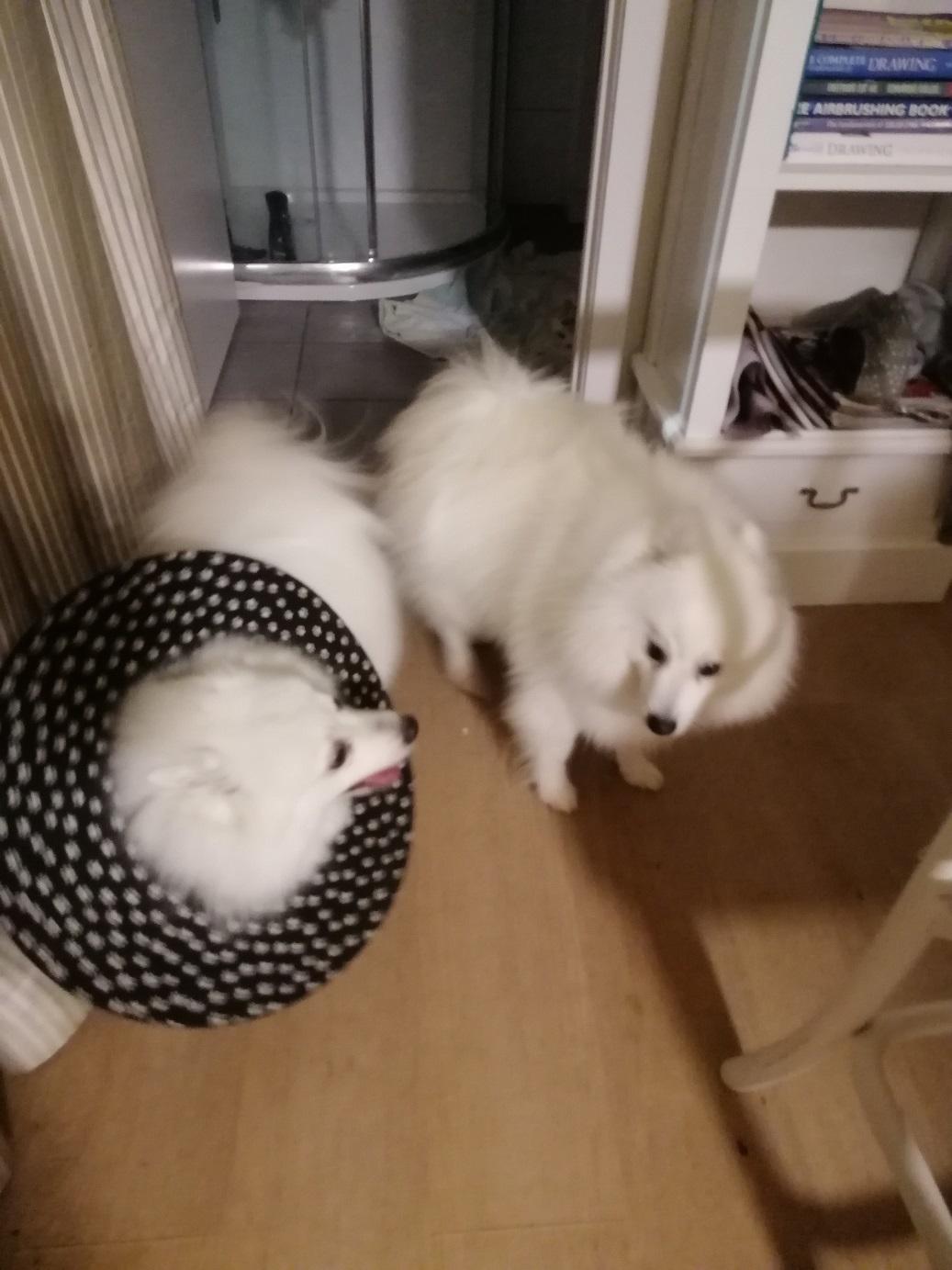 Asked the vet if my use of a coat had added to the problem but she thought not. Told me that the crushing action (combined with shaking) of a dog bite means that the skin often looks OK at the time of suturing but can become necrotic later. She still has one more area of blackened skin (around the bite that went through her back into rib-cage) but it shows no sign of lifting yet = ‘fingers crossed’ for that one to have better healing underneath.