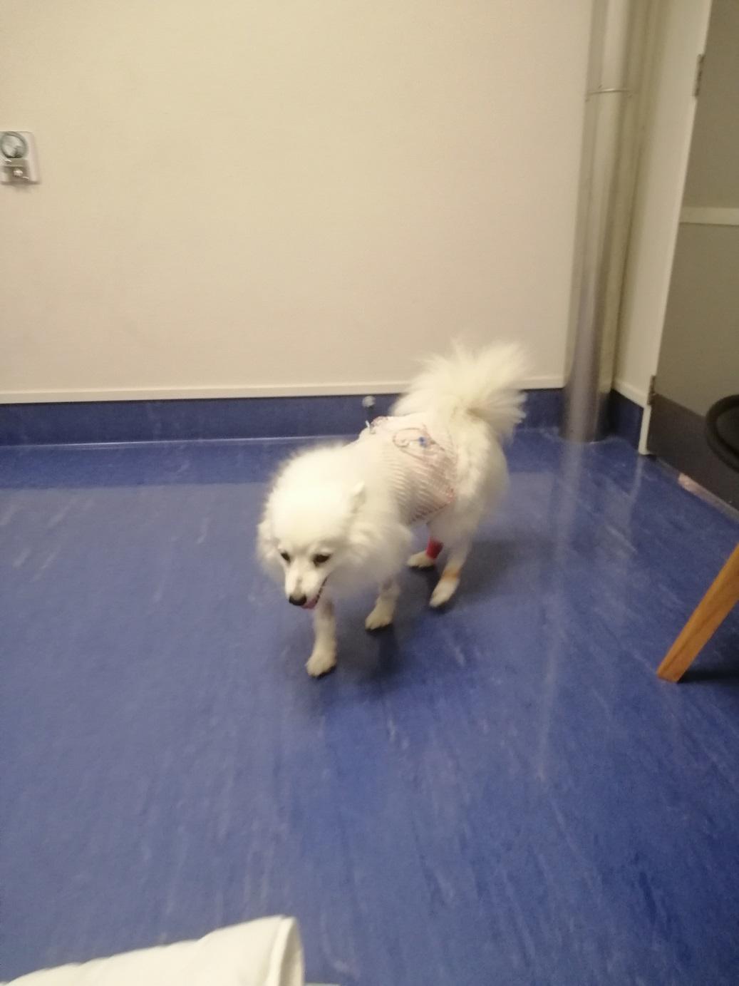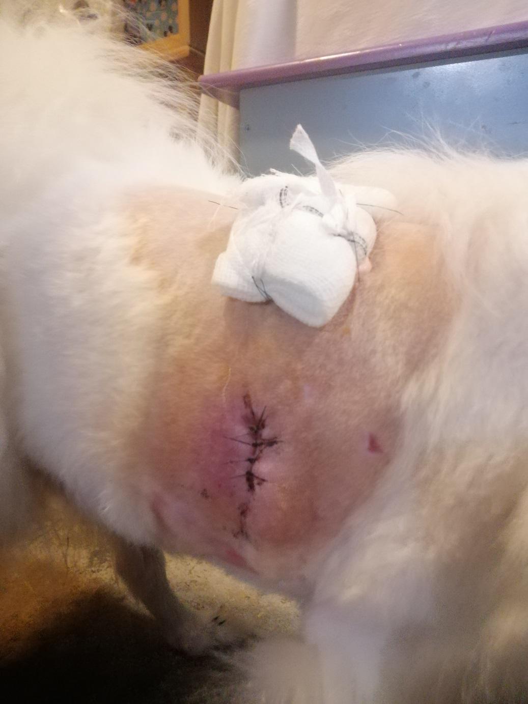 When we left I thought she was just feeling a little too sore to jump into the car (lifted her) but later realised the bandaging was just too tight. Needs to be firm to hold the compress in place but was actually restricting her walking and became obviously stressful to her over the next two hours.