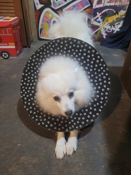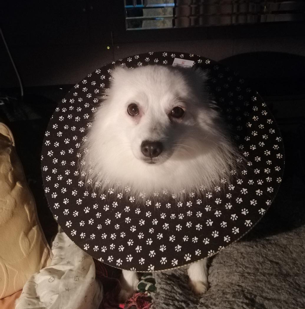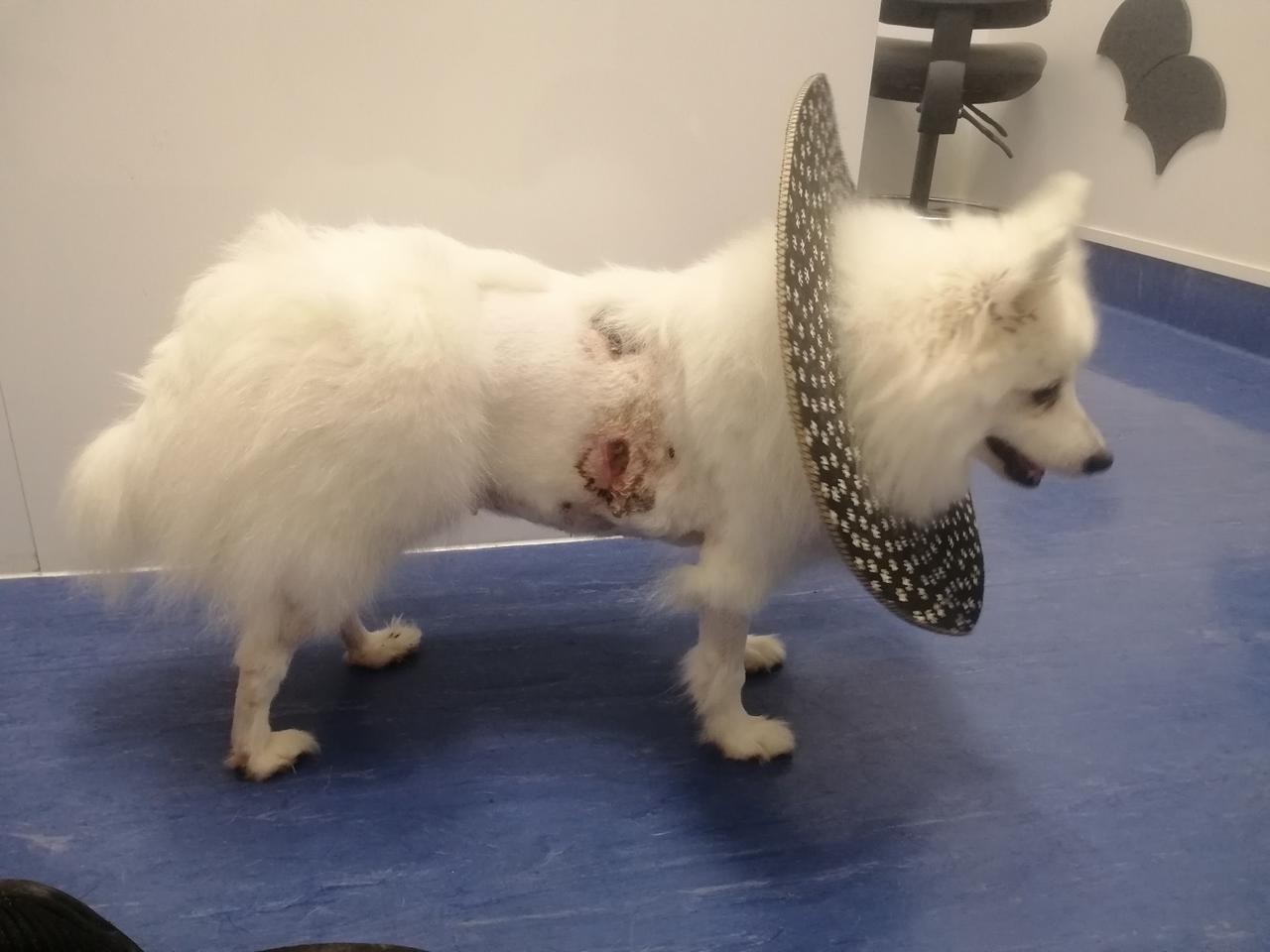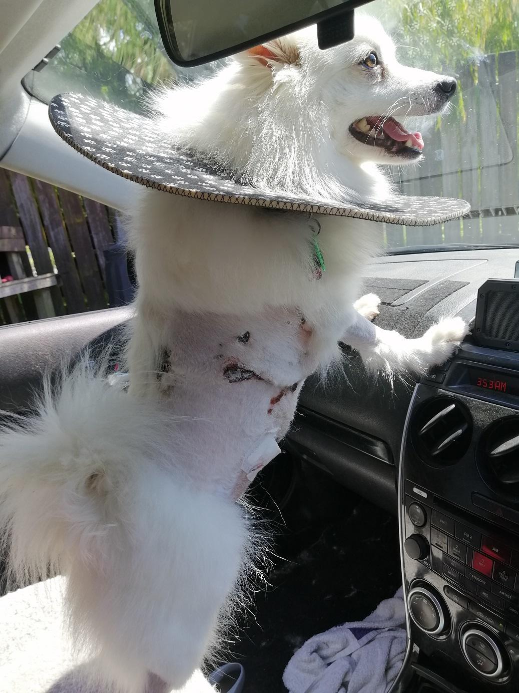 Luna’s thoracotomy wound had opened up and was showing signs of infection when I checked it today. Back off to vet after ending photos for review- but that was clearly going to be the case upon seeing it. Luna knows the scent of the place now and is not keen to go in but.....