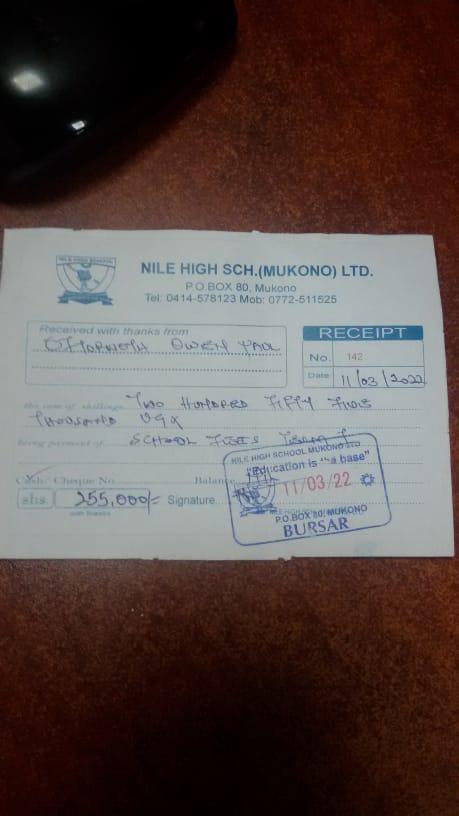 I send the money to Uganda as a bank transfer via Denis, who is my daughter's uncle and who I trust completely. Denis gives the money to Naggie in person, who pays the fees for his brothers and send me the receipts from the school.