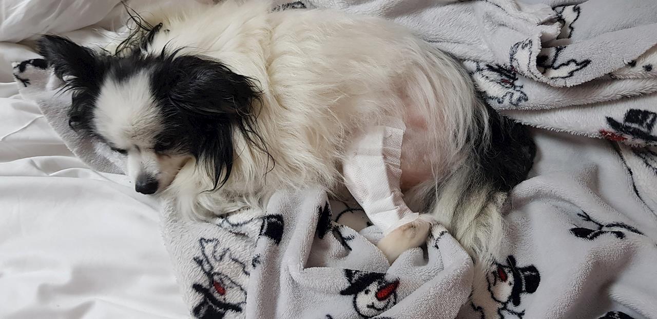 1 November 2019Stitches out. Still on pain relief, and short walks only. No jumping allowed and hes doing really well resisting the temptation .he does do the odd jump But it's to be expected. looks funny with his little chicken leg. But the fur has started to grow back. I have to say Simbas very quick on 3 legs. I'm still trying to get more funds so please if you could share his page I'd really appreciate it. Photo of his scar. Very neat. Very impressed with Richard's stitching. Looking very good. Love to all.