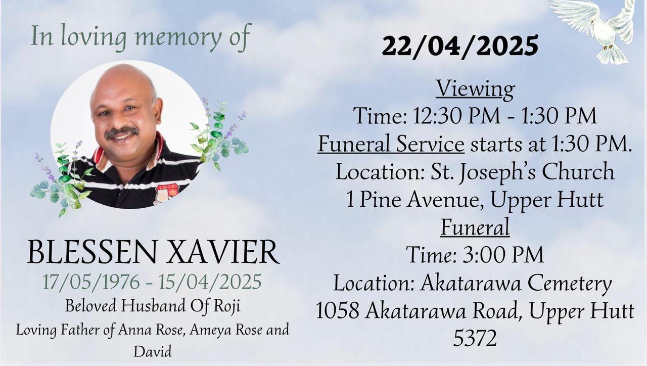 Blessen was a beloved member of our Malayali community in Wellington, a devoted husband to Roji, and a loving father to Anna Rose, Ameya Rose and David. His unexpected departure has left a deep void in our lives and our community.