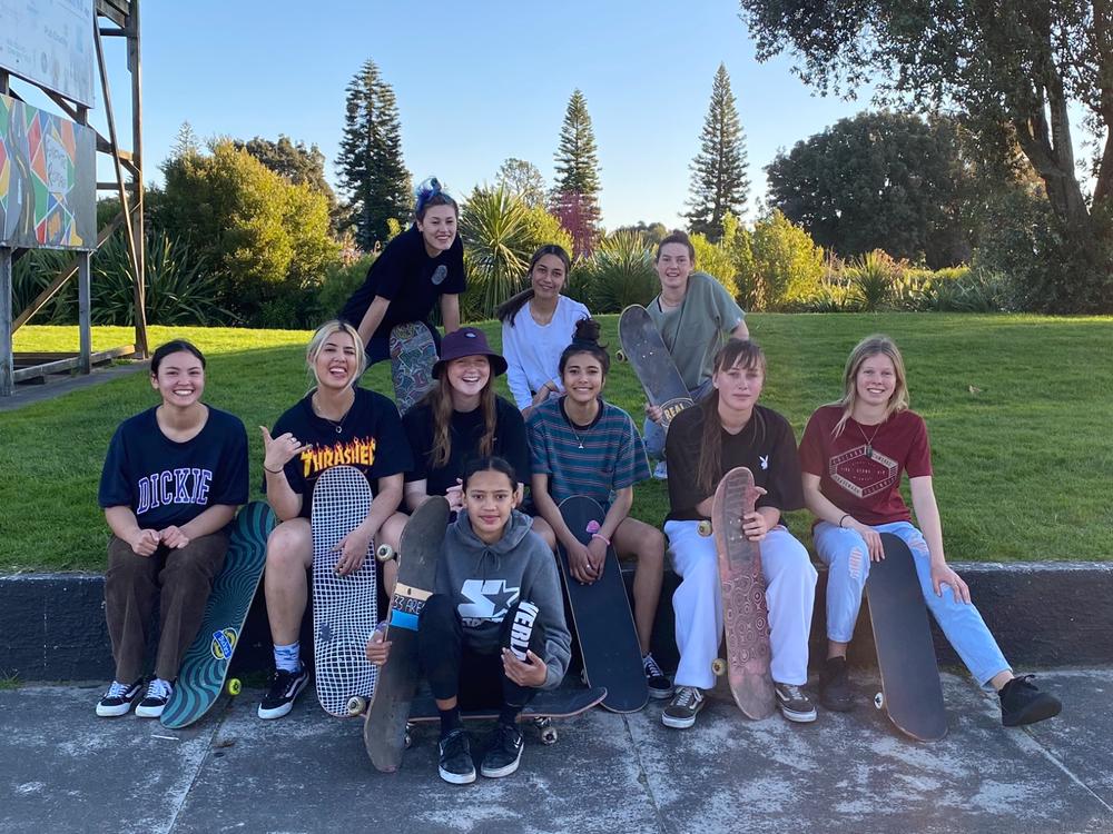 My name is Sophee Hills and I run a girls skate group in Gisborne called Surely Skate; alongside my sister Tessa and friends Georgia and Morgan. We skate at the local skate park every Sunday afternoon from 3-5pm. Our group is made up of approximately 30 members of all ages and skill levels. Surely Skate started around the beginning of 2019, we started off with only a few of us going down to the skatepark every now and then. The more we went the more girls we recruited. Our goal then became to inspire and build confidence in female skaters.