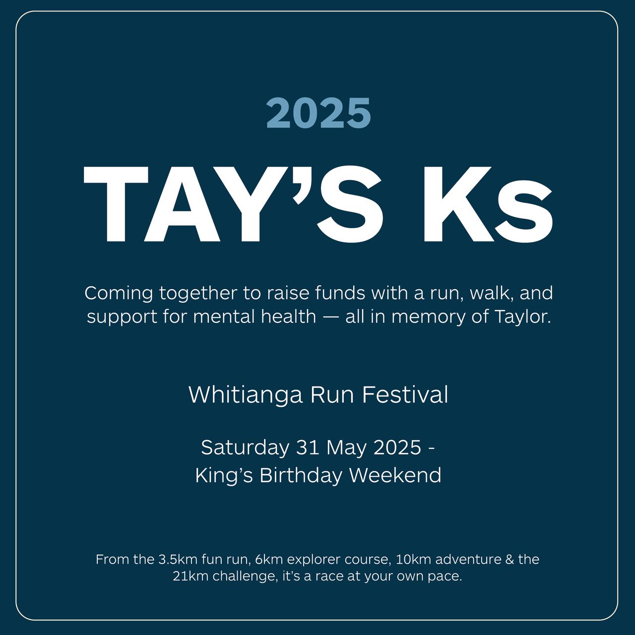 We run and walk in memory of Taylor Kite to raise funds to support the mental health of young New Zealanders.