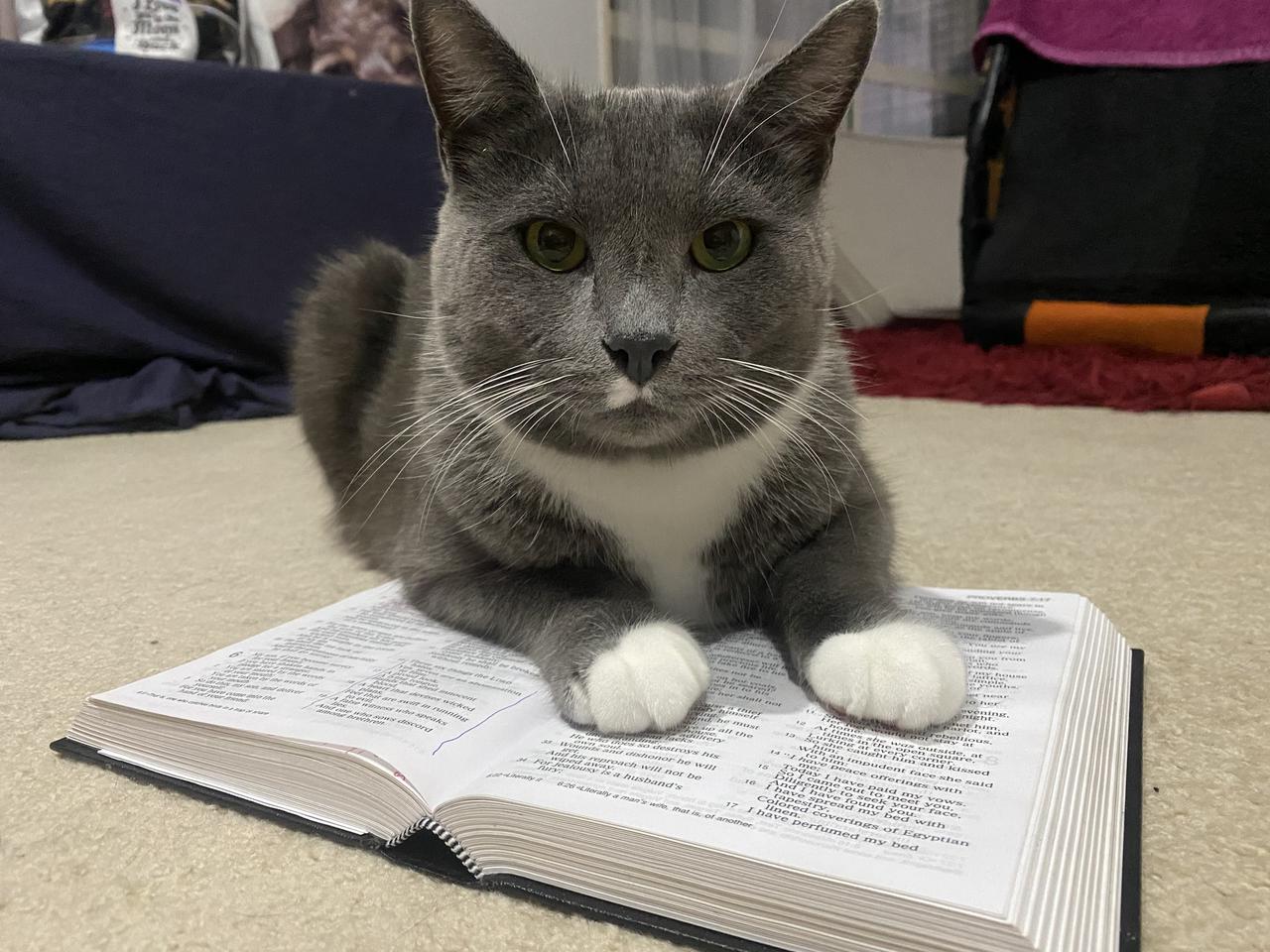 Stewie hanging with me while I have my nightly bible study! Digging into the wonderful world of wisdom in Proverbs via Amazing Facts Sabbath School Study Hour. 😊 #biblestudy #cutecats