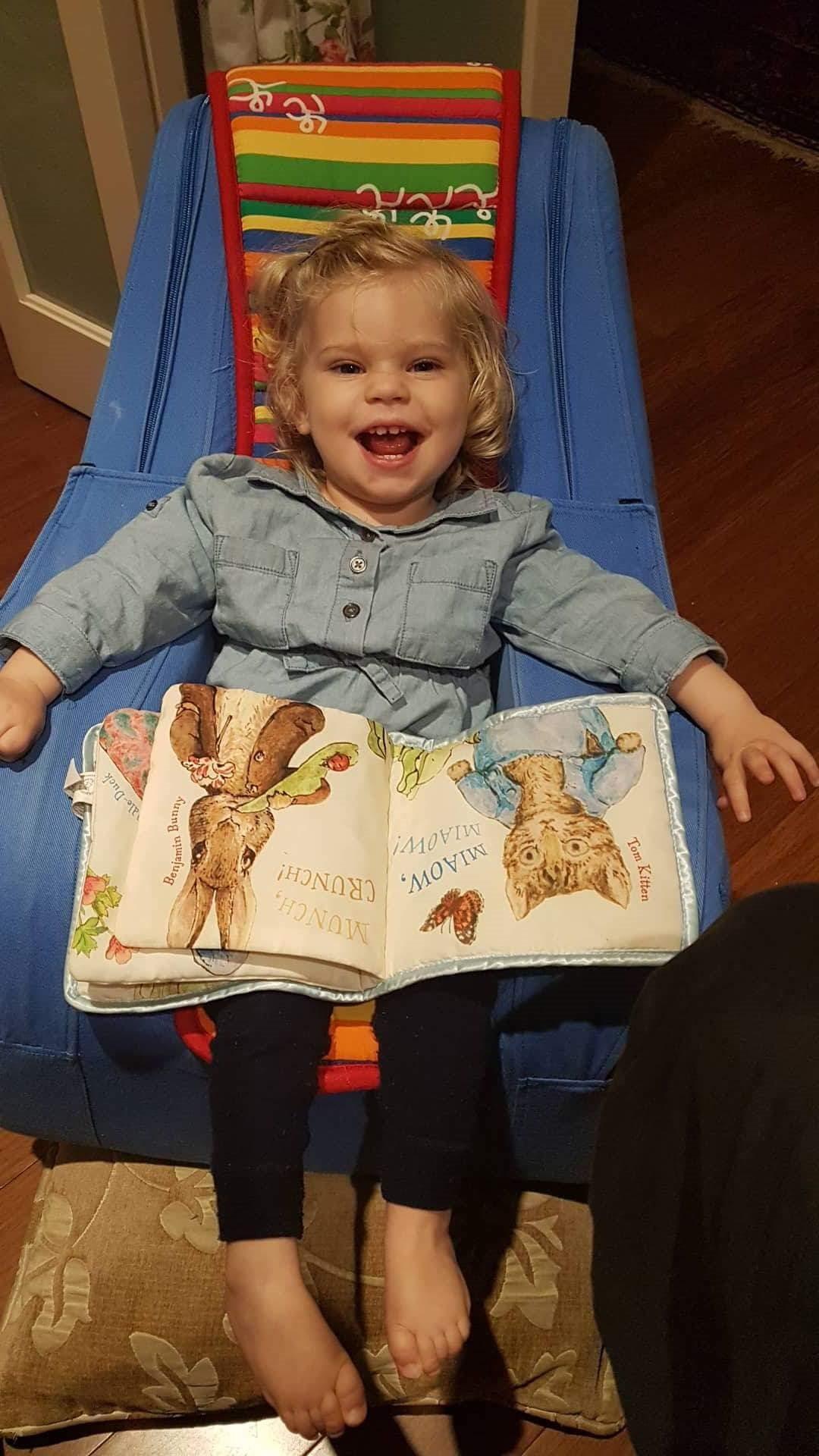We have noticed that Sophie loves playing with other kids and learns quickly from watching them. So we have been making an effort to make sure she gets more opportunities to be around other kids. She has also been surprising us with how much she knows and understands. Because it is difficult for her to move and speak it’s not always easy for her to show us what she knows. It turns out her understanding is on par with what you would expect of a 2yr old.