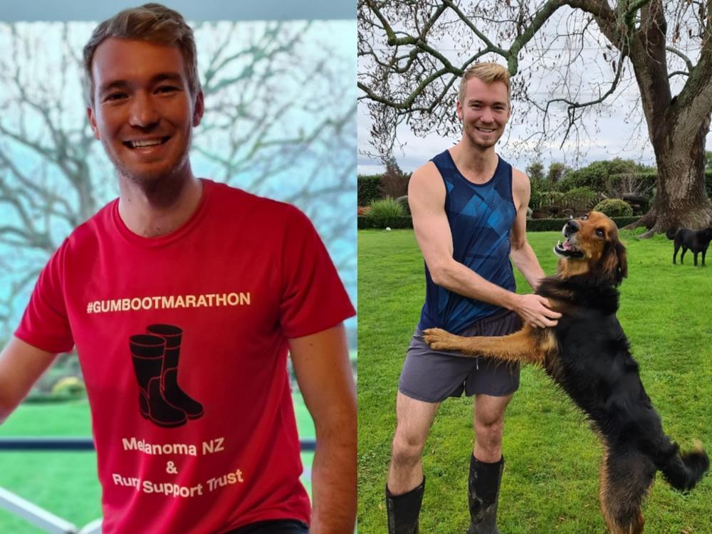 I am running the Auckland Marathon in red gumboots to raise awareness for Melanoma New Zealand and the Rural Support Trust.