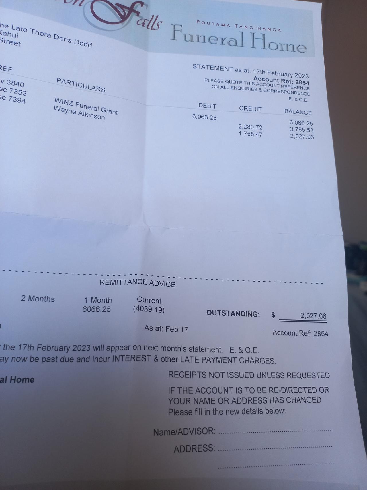 Thank you for all your support thora whanau just got 2038.00 from work and income to help with the undertake the balance owning is 4030.00 thora didn't have kiwisaver all assets the funeral cost is on the whanau and a lot of the whanu are lower income and will put her whanau into hardships..so if you can help please do . So great feel 😌
