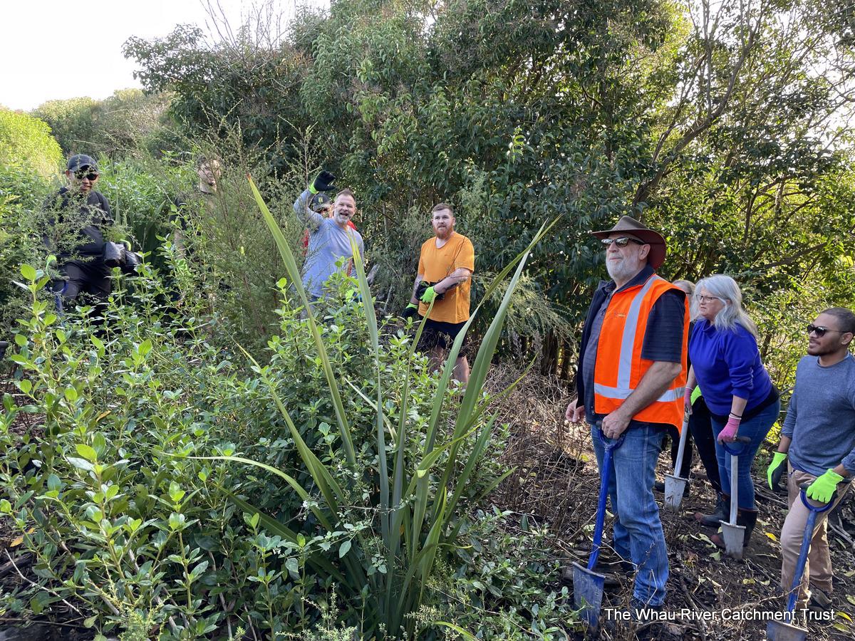 Picture: EROAD busy planting at Honan Place Rosebank. Contact us by emailing info@whauriver.org.nz.